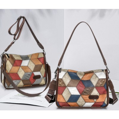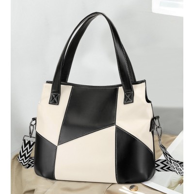 Ladies' Shoulder Bag Foreign Trade Large Capacity Color blocked Retro Soft Leather Tote Bag Fashion Commuter Bag Crossbody