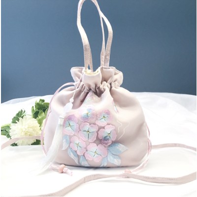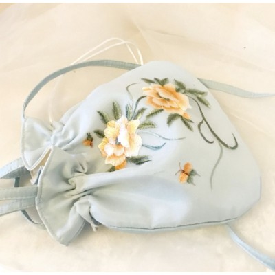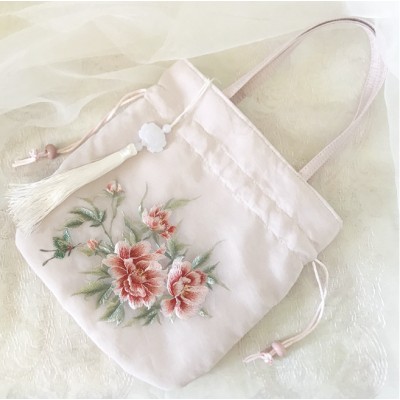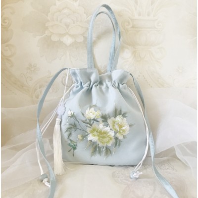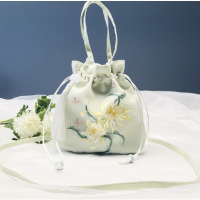 Light green Epiphyllum tassel embroidered bag, Chinese style Hanfu accessory bag, Su embroidery rounded corner