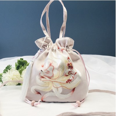 Original Nine Tailed Fox Tassel Embroidery Bag Chinese Style Hanfu Accessory Bag Su Embroidery Rounded Corner