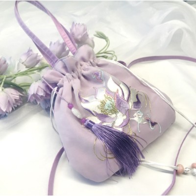 Eugen embroidery+full purple gold border lotus bag